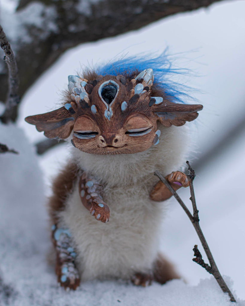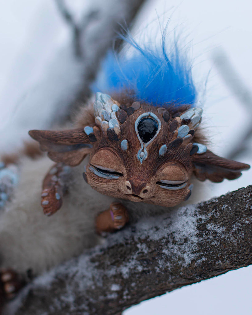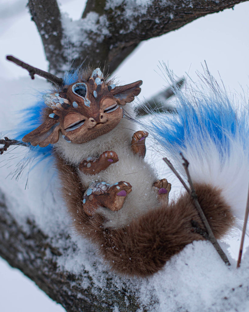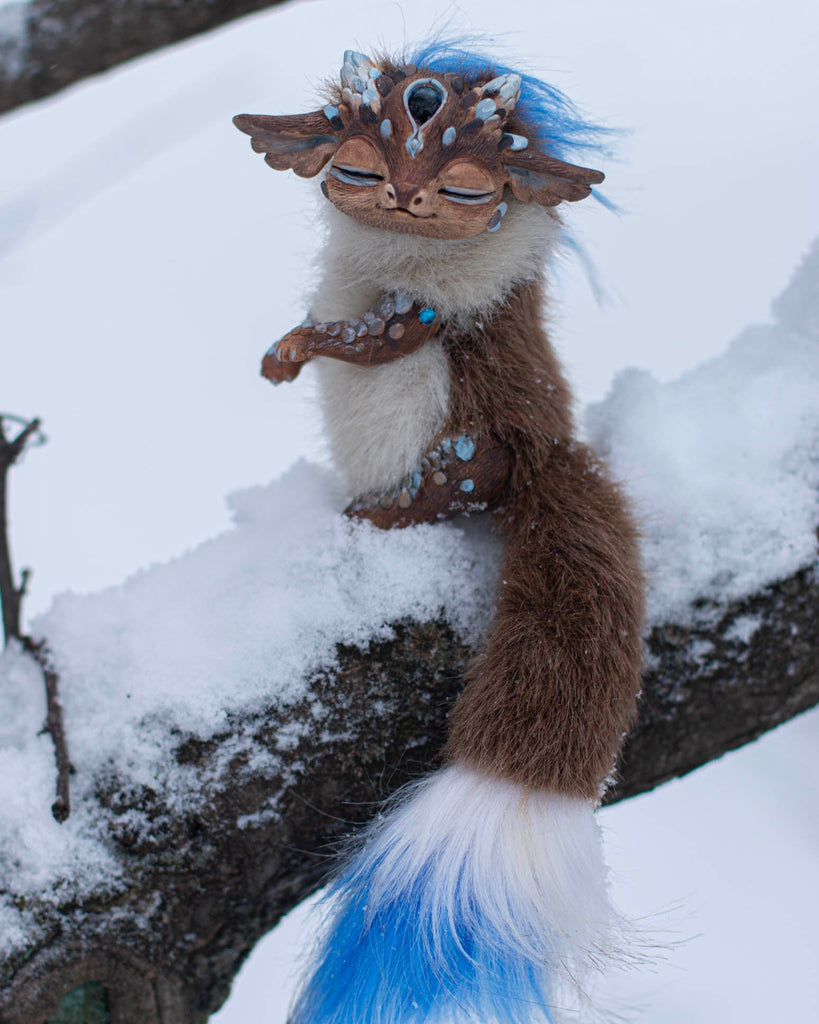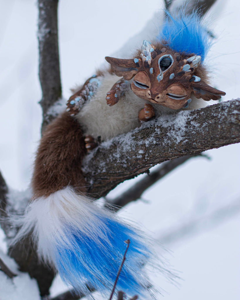 Materials: bjd skeleton, faux fur, polyurethane, wire, sintepon, pastels, acrylic paints, varnish.