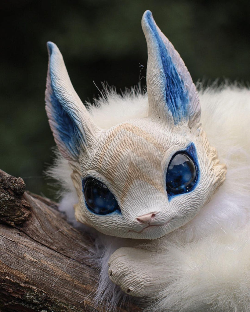 Materials: bjd skeleton, faux fur, polyurethane, wire, sintepon, pastels, acrylic paints, varnish.