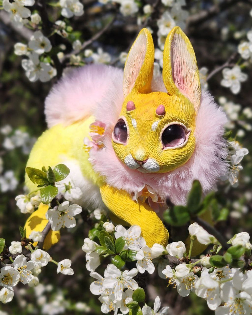 Materials: faux fur, polyurethane, wire, sintepon, pastels, acrylic paints, varnish.