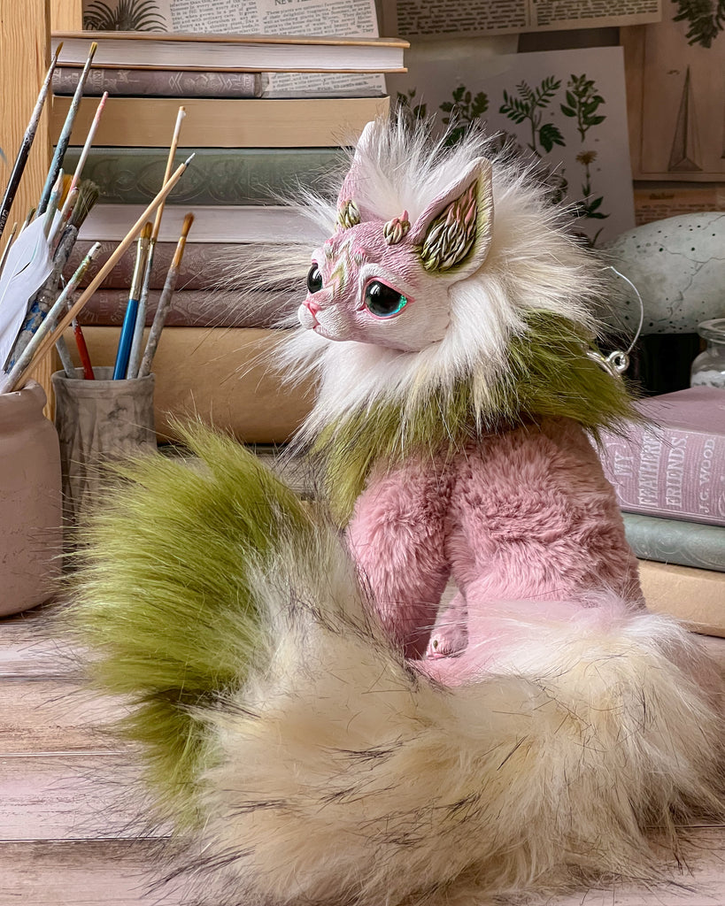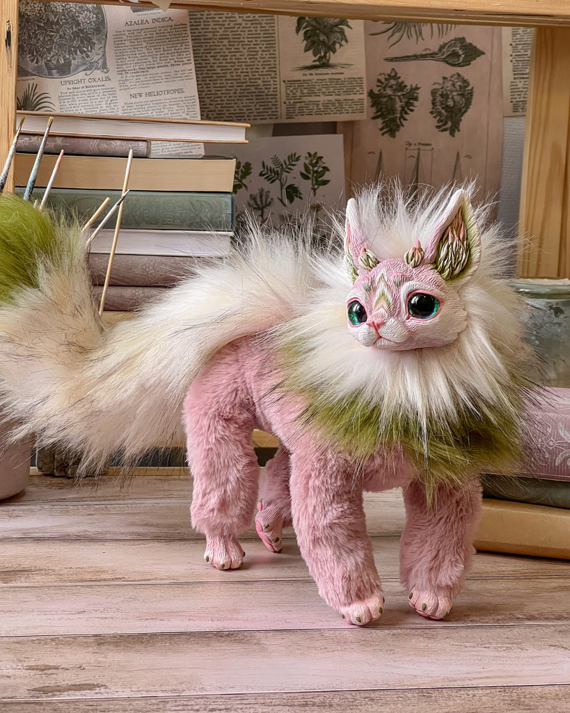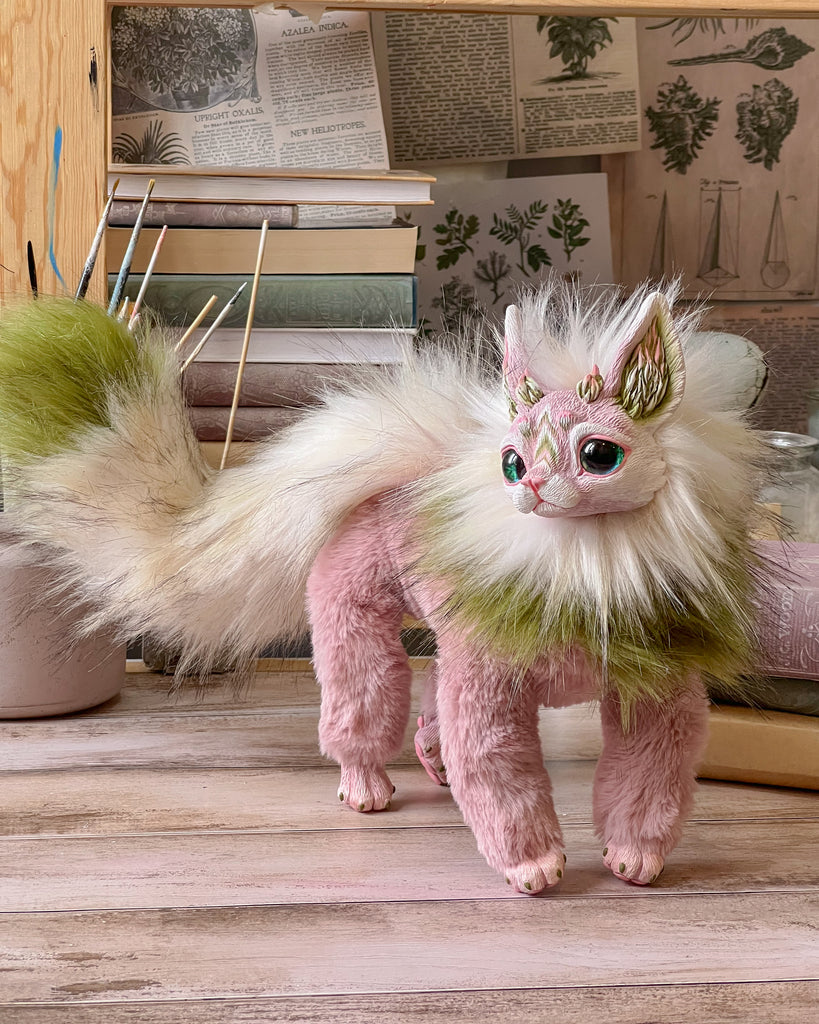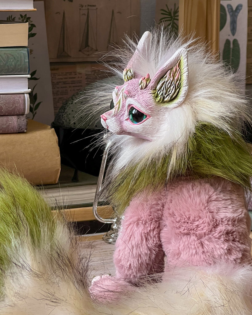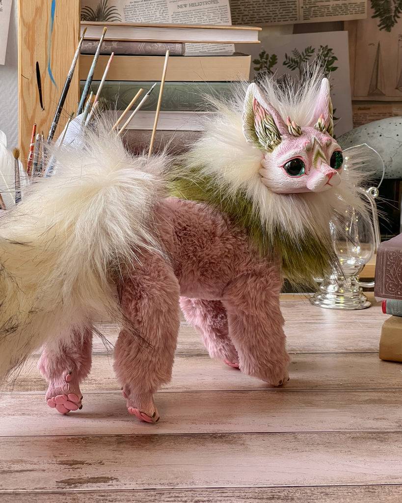 Materials: bjd skeleton, faux fur, polyurethane, wire, sintepon, pastels, acrylic paint, varnish.