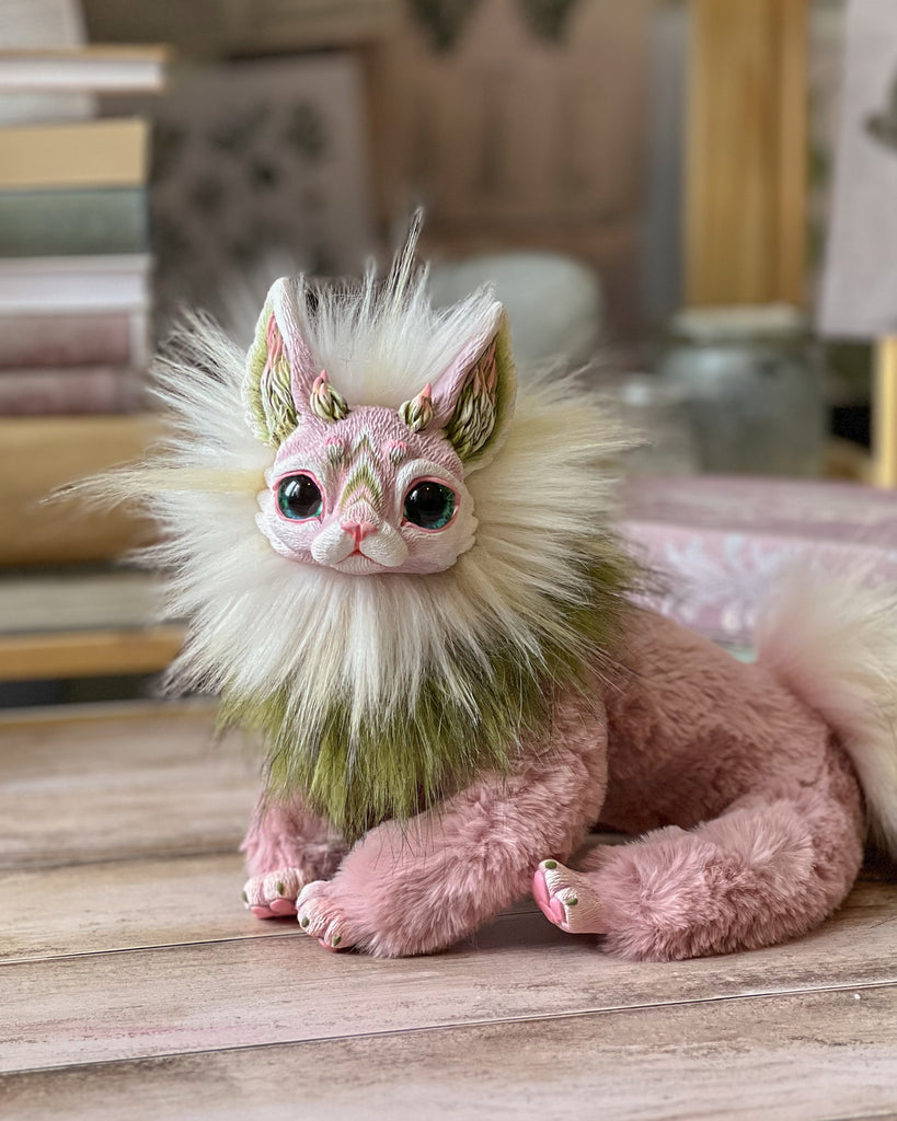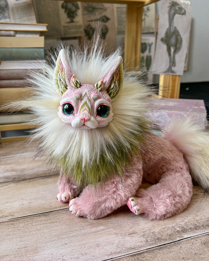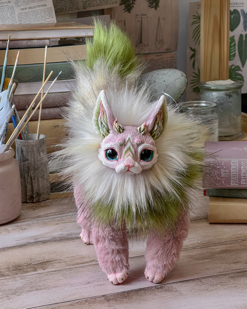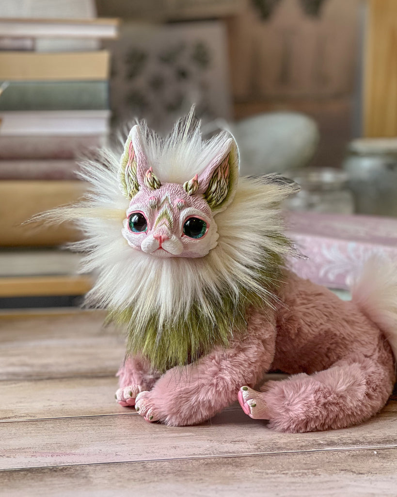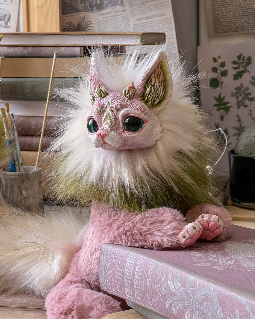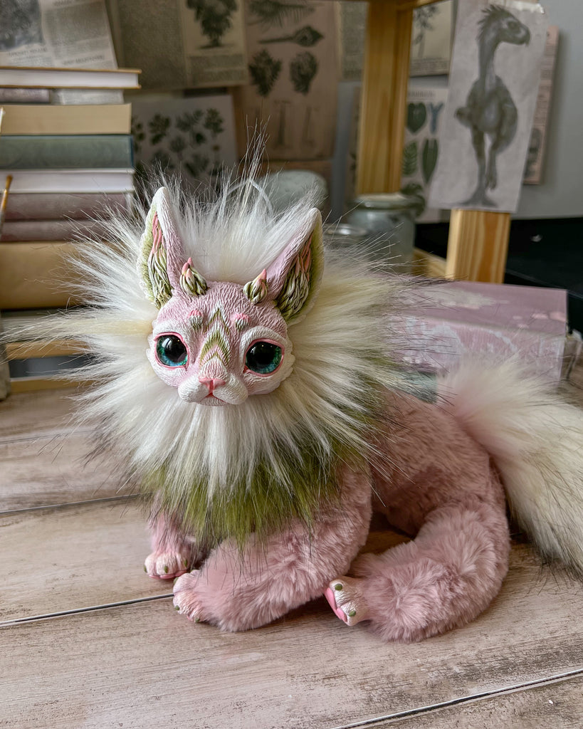 Materials: bjd skeleton, faux fur, polyurethane, wire, sintepon, pastels, acrylic paint, varnish.