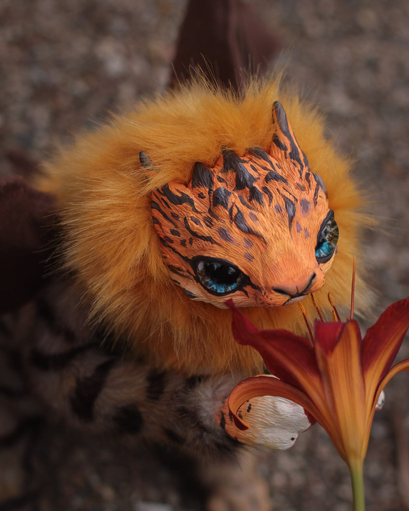 Materials: bjd skeleton, faux fur, polyurethane, wire, sintepon, acrylic paints, varnish.