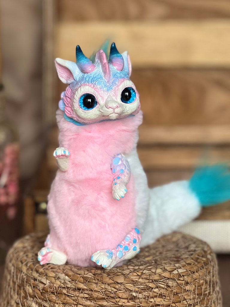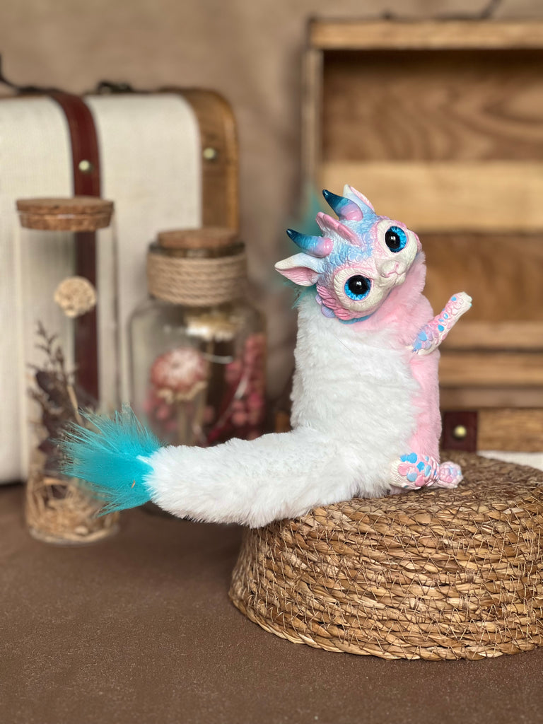 Introducing our charming Oriental Dragon! This adorable creature features a soft, furry body and intricate, scaled details on its face, hands, and feet. With its captivating large eyes, petite horns, and expressive features, this little dragon exudes a unique charm. Ideal for fantasy enthusiasts and collectors, this oriental dragon is sure to add a touch of magic and wonder to your collection.