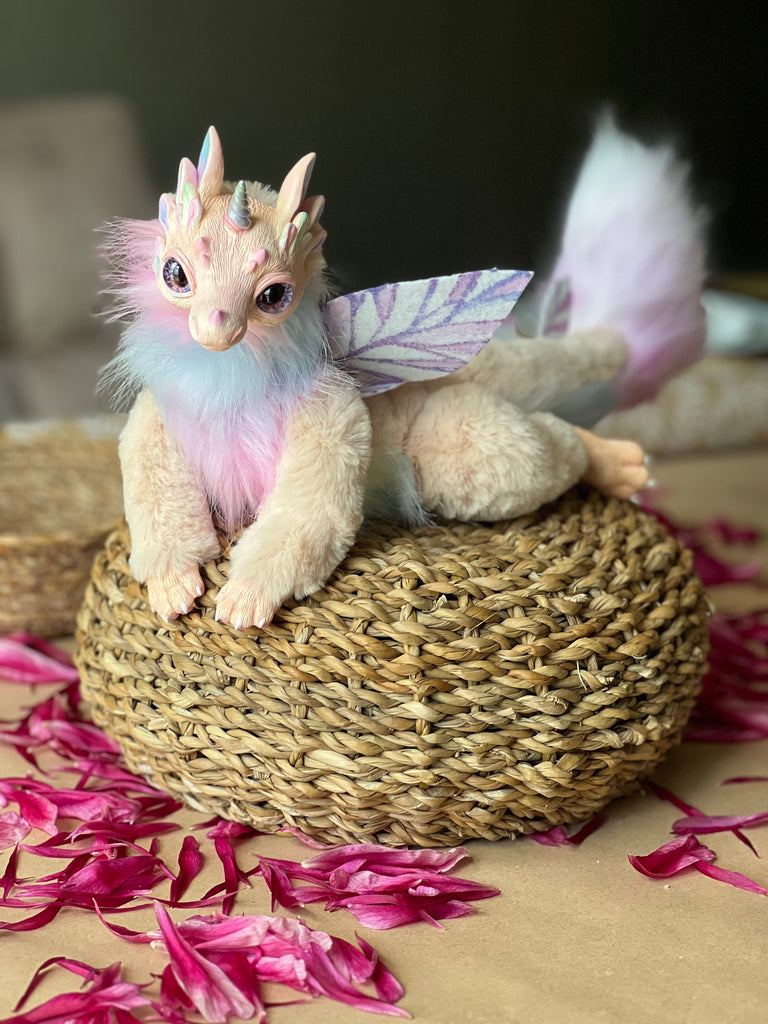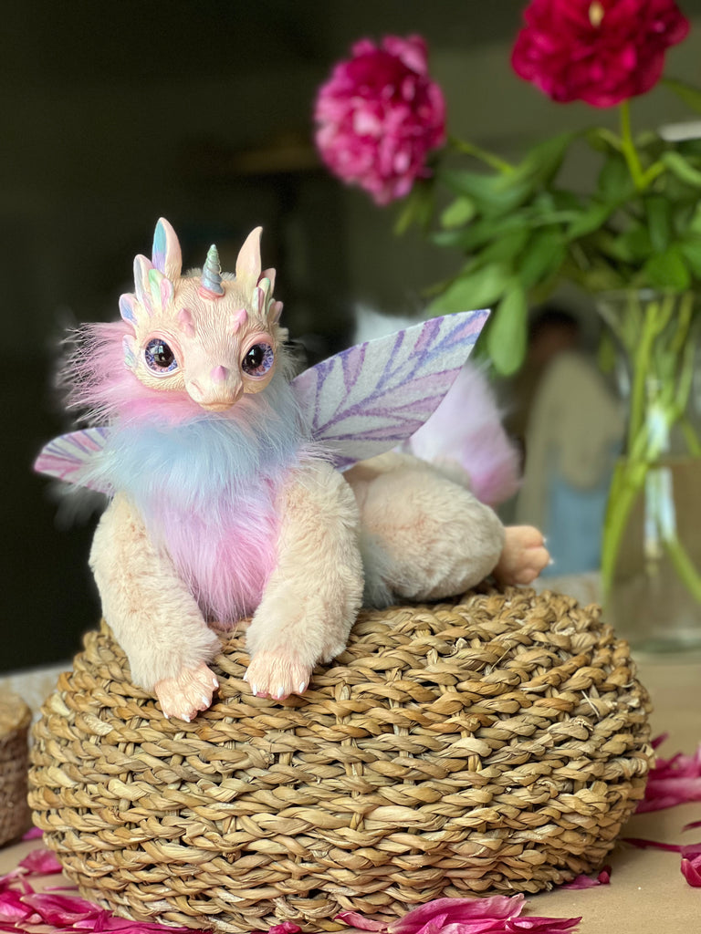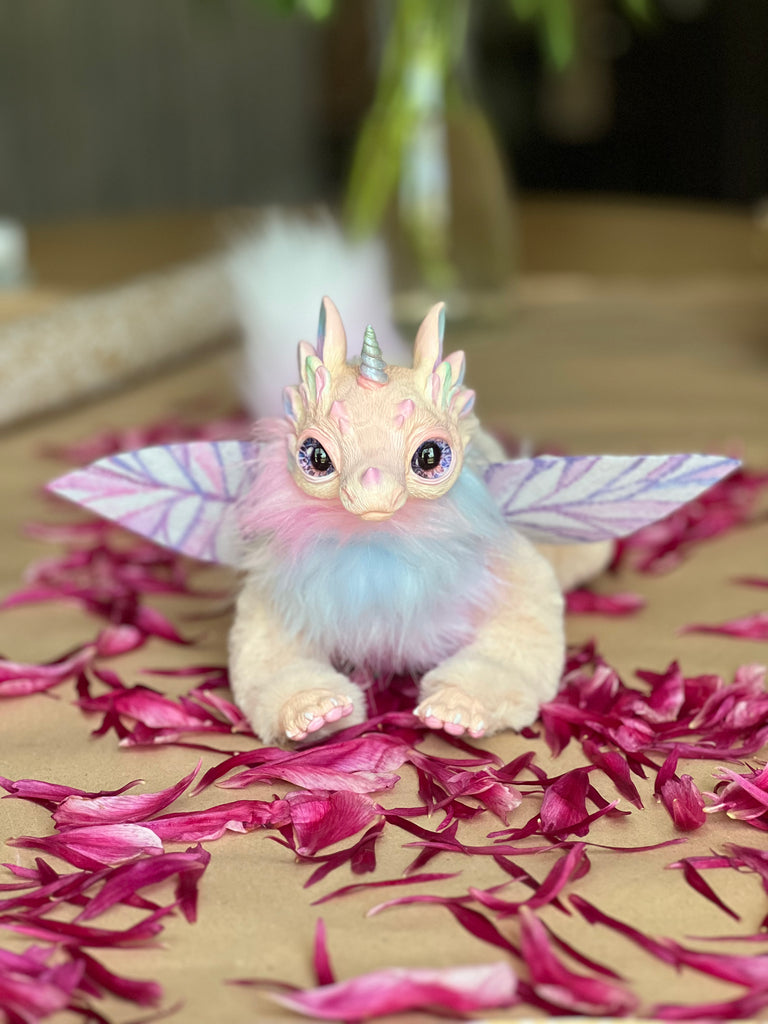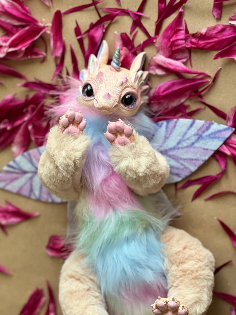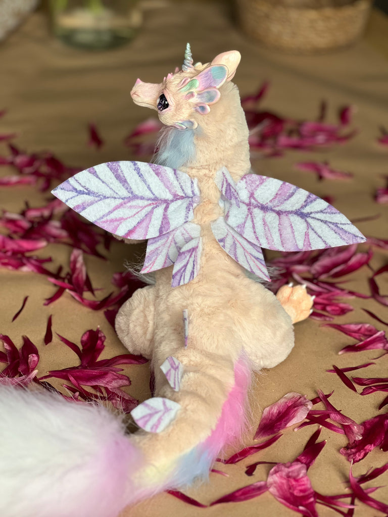 Introducing the Seahorse Dragon, a captivating fusion of seahorse elegance and dragon mystique. Adorned in shades of blue and turquoise, this enchanting creature features a distinctive head with a charming tiny horn on its forehead, framed by deep, alluring eyes. Delicate butterfly wings gracefully extend from its back, a nod to its dragon heritage. Soft scales along its spine add a touch of tactile wonder to its ethereal presence. The Seahorse Dragon encapsulates the magic of both land and sea, ready to whisk you away to realms of imagination and adventure.