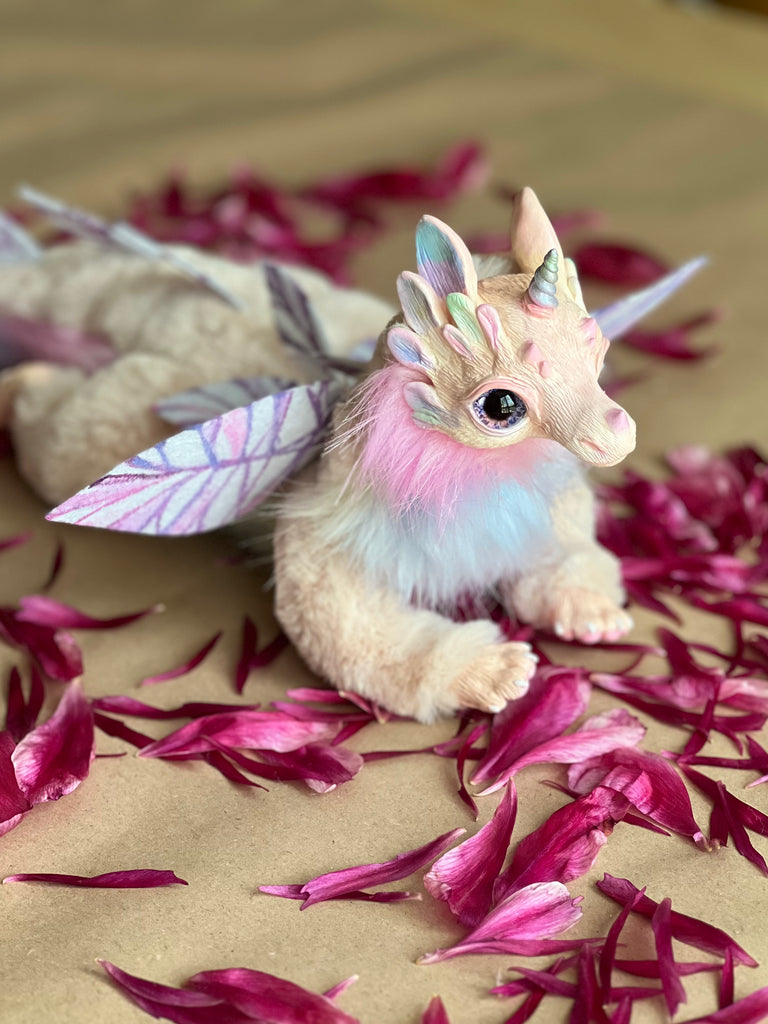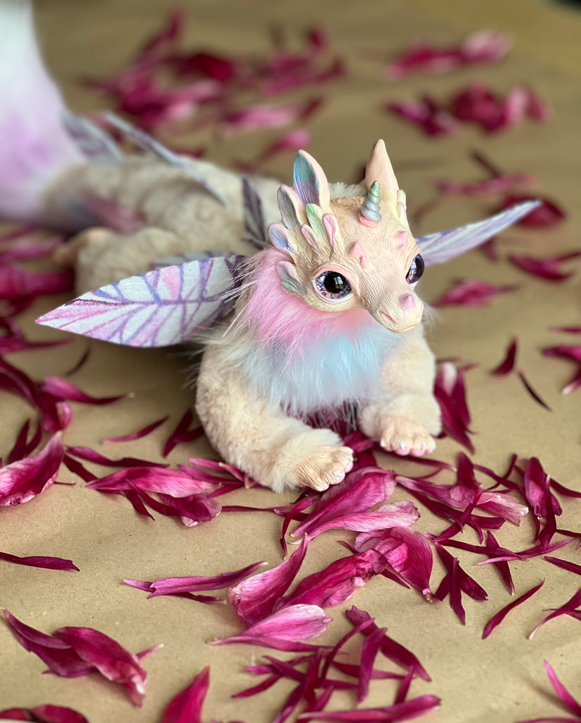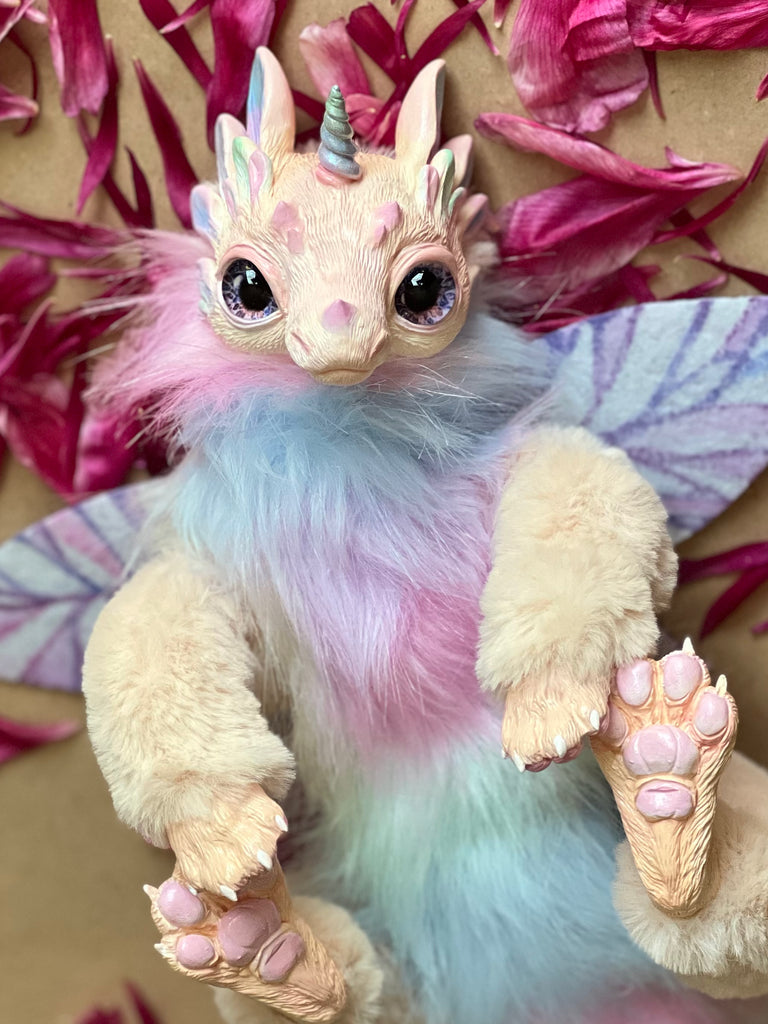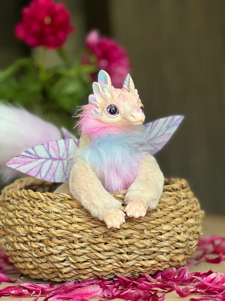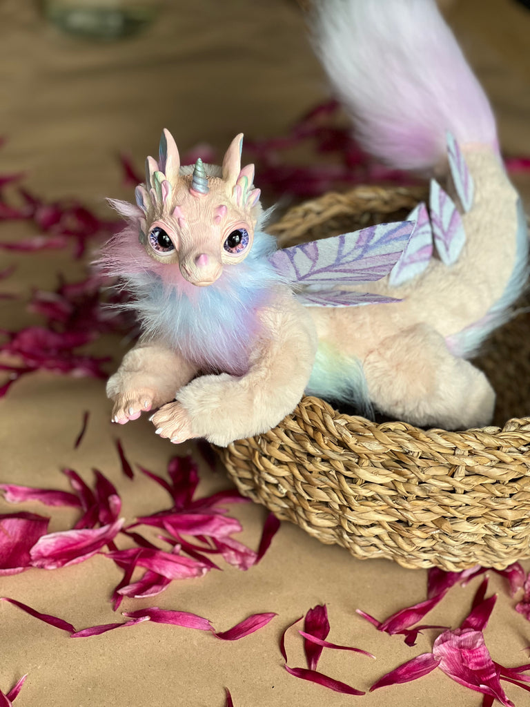 Introducing the Seahorse Dragon, a captivating fusion of seahorse elegance and dragon mystique. Adorned in shades of blue and turquoise, this enchanting creature features a distinctive head with a charming tiny horn on its forehead, framed by deep, alluring eyes. Delicate butterfly wings gracefully extend from its back, a nod to its dragon heritage. Soft scales along its spine add a touch of tactile wonder to its ethereal presence. The Seahorse Dragon encapsulates the magic of both land and sea, ready to whisk you away to realms of imagination and adventure.