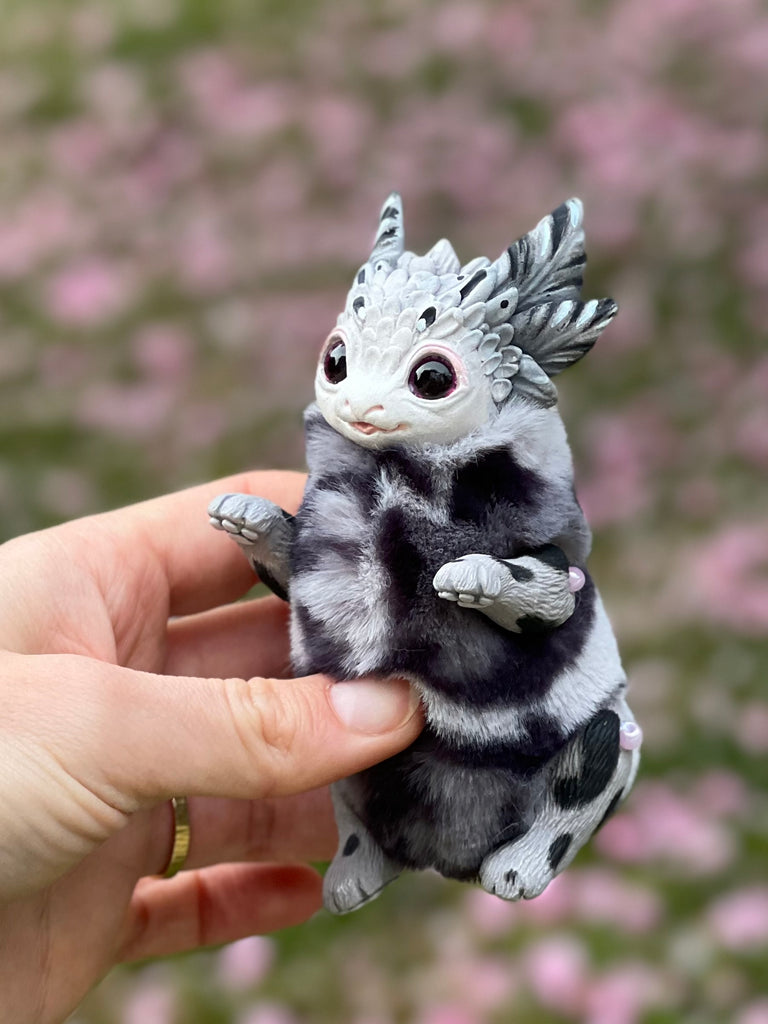 Materials: bjd skeleton, faux fur, polyurethane, wire, pastels, acrylic paint, varnish, acrylic bead.