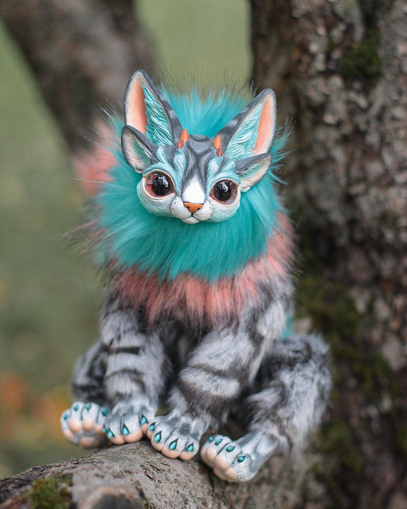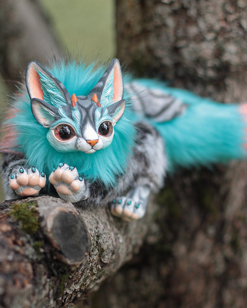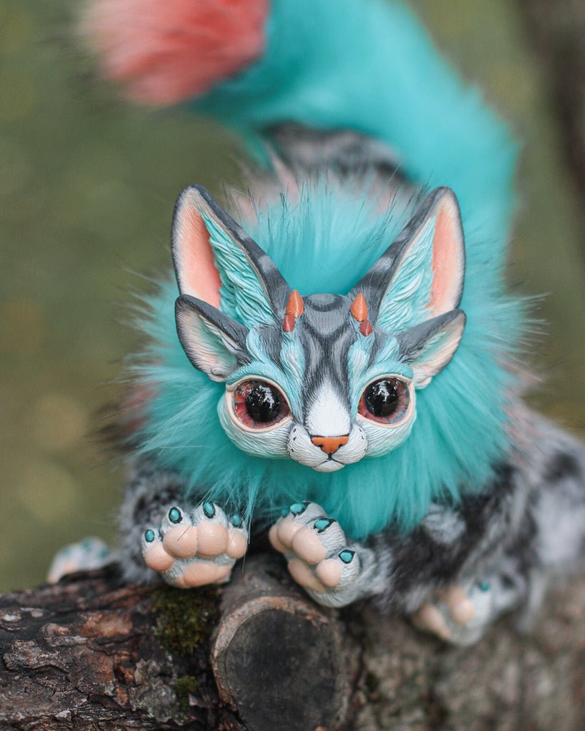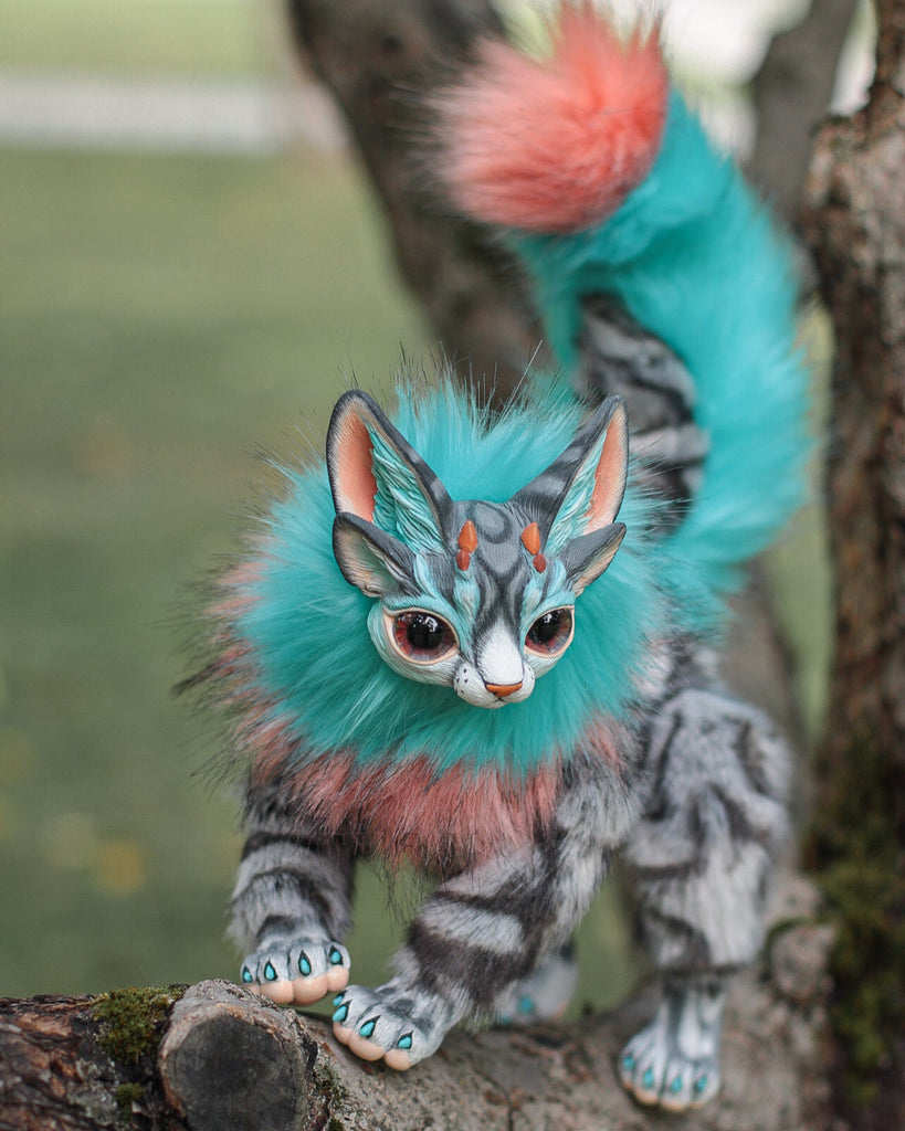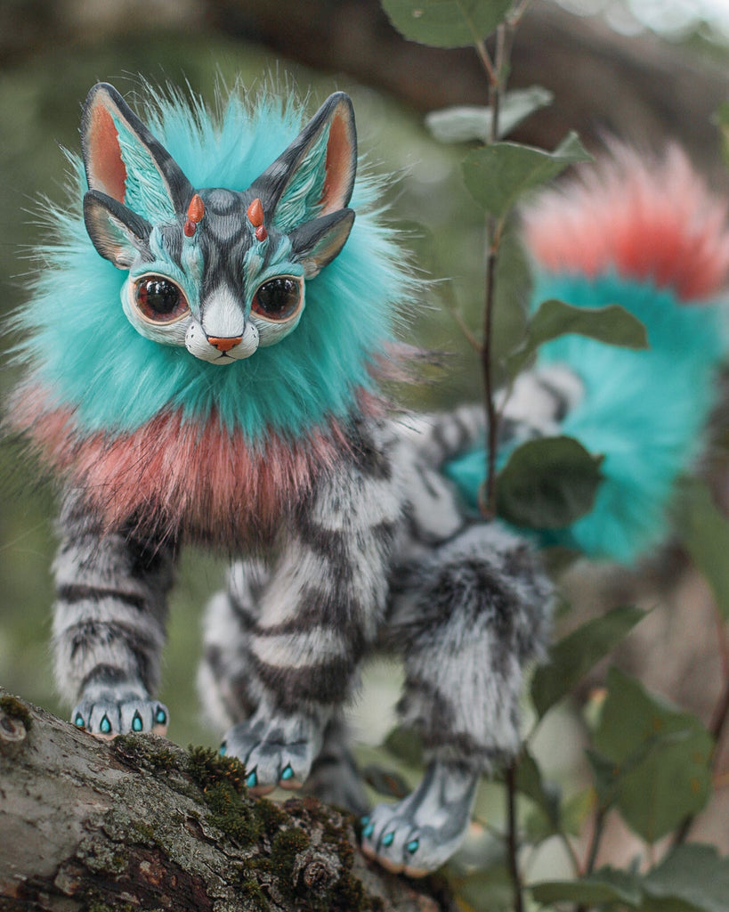 Materials: bjd skeleton, faux fur, polyurethane, wire, sintepon, pastels, acrylic paint, varnish.