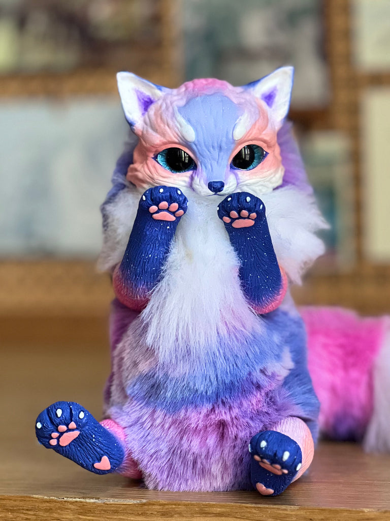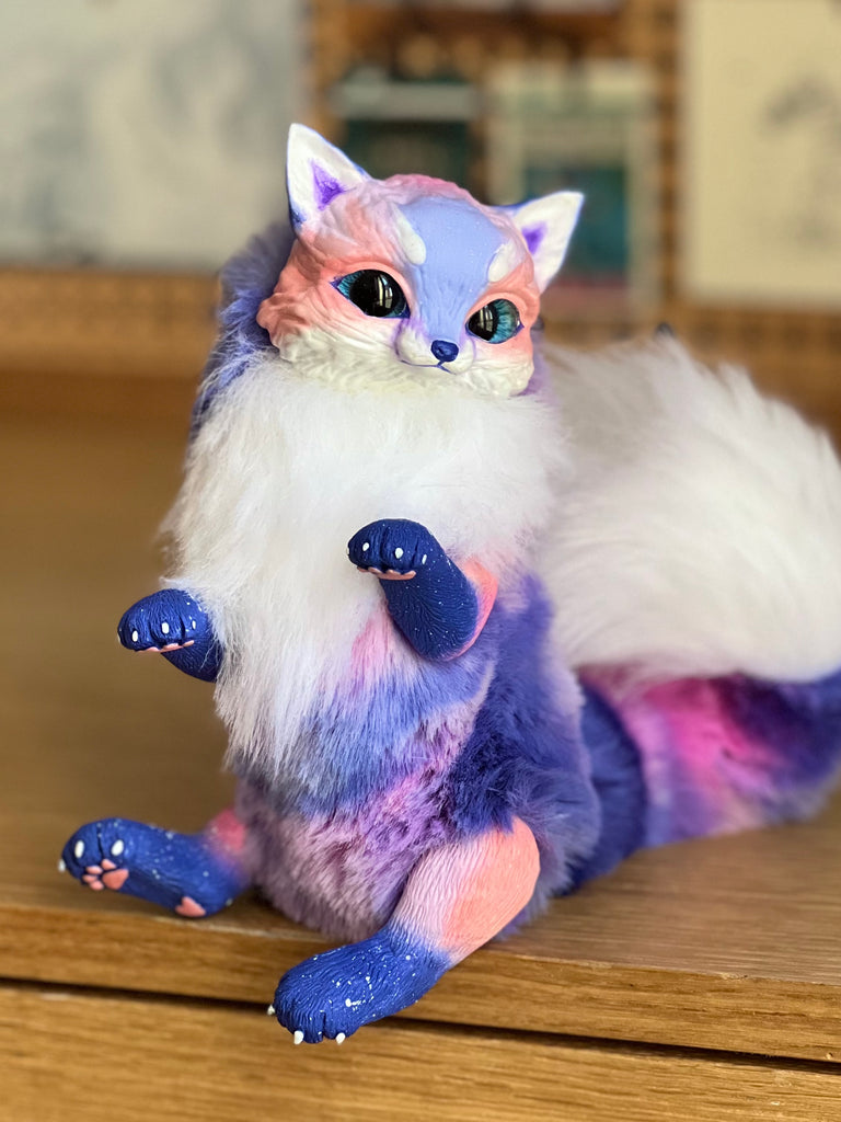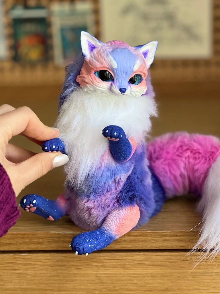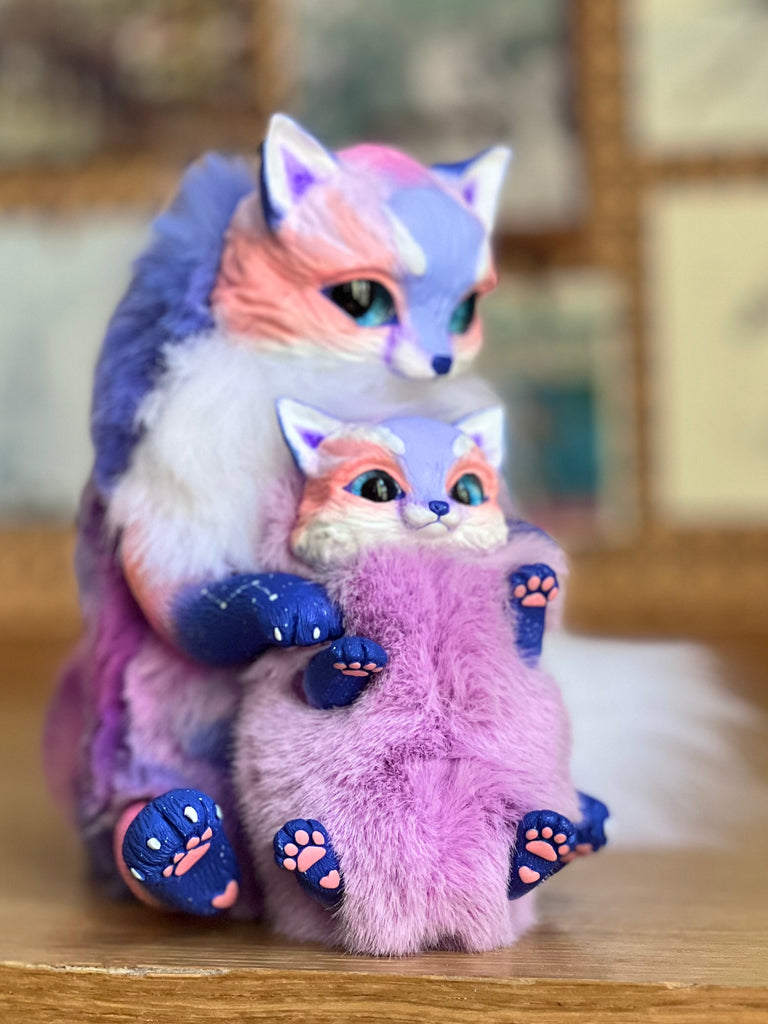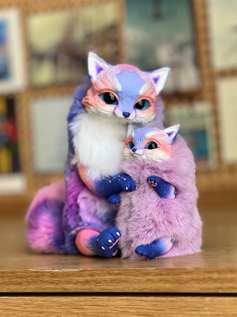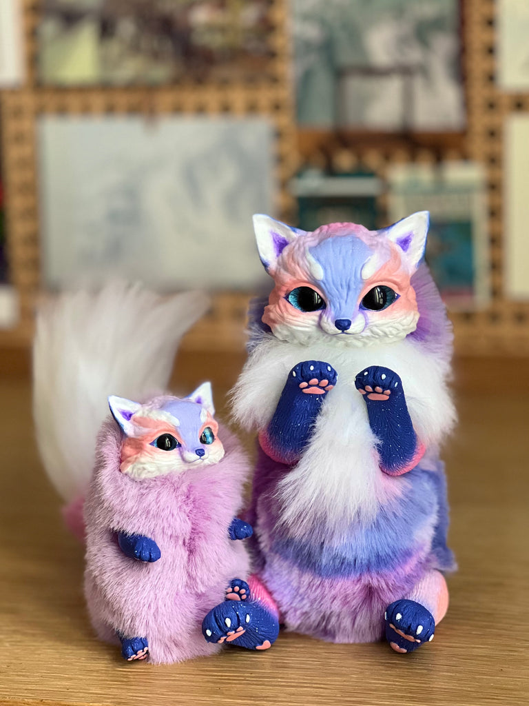 This adorable duo is perfect for collectors, photographers, or gentle play. Each piece is poseable and made from durable, modern materials. The mother fox is about 17 cm (6.7 inches) tall, and the baby fox is 8 cm (3 inches) tall. Both are lightweight, flexible, and photogenic — ready for stories, shelf displays, or sweet moments on your desk.