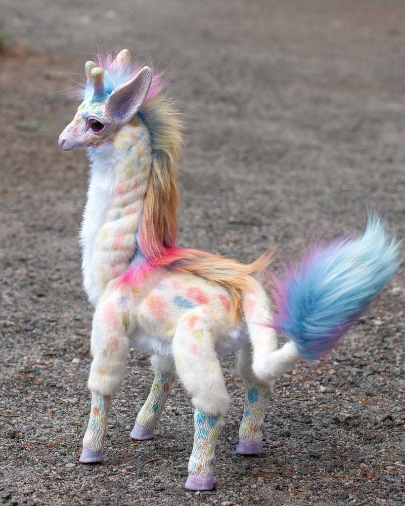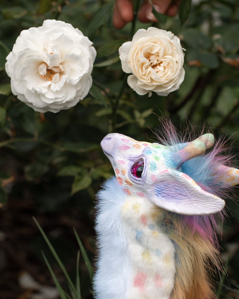 Materials: bjd skeleton, fake fur, steel wire, acrylic paints, foamiran, resin.