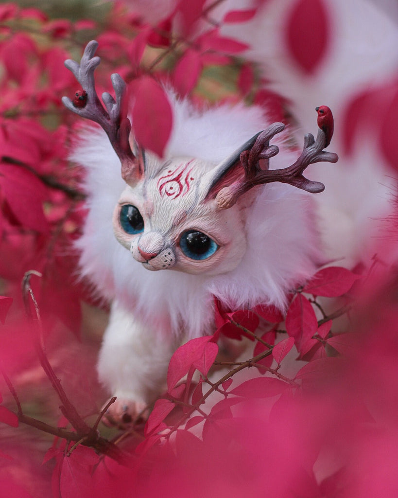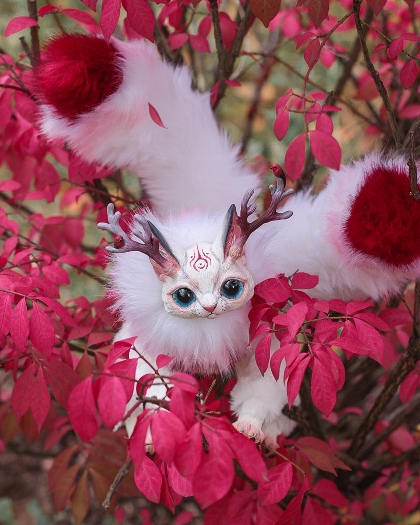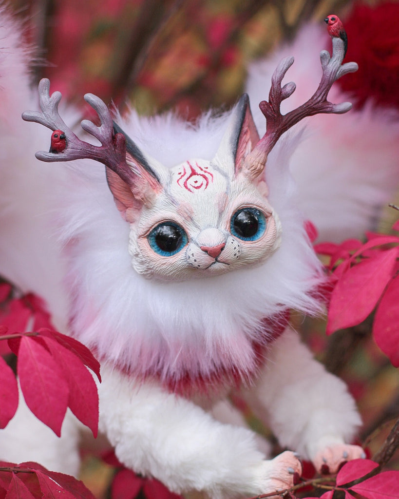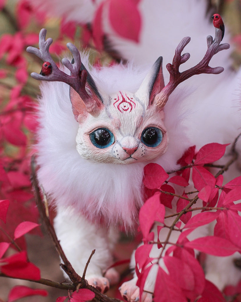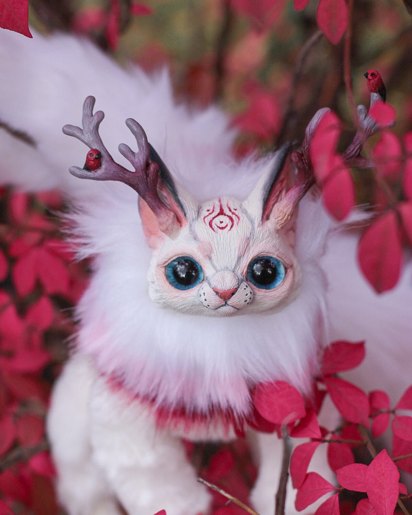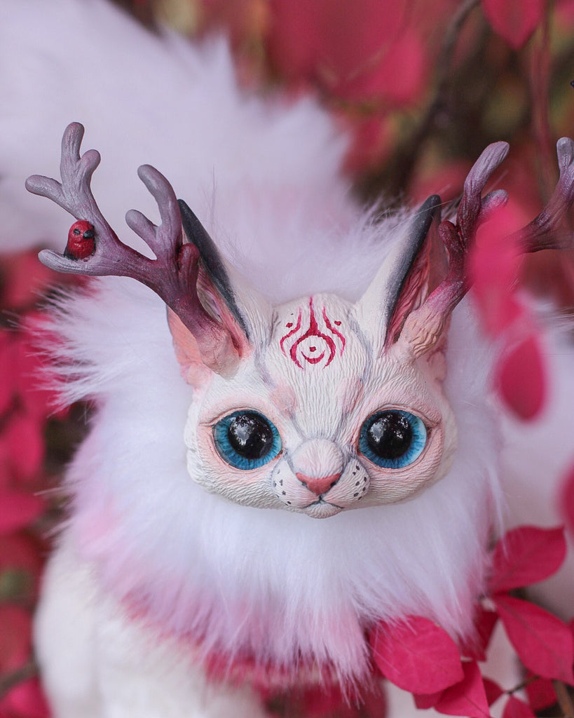 Materials: bjd skeleton, faux fur, polyurethane, wire, sintepon, pastels, acrylic paint, varnish.