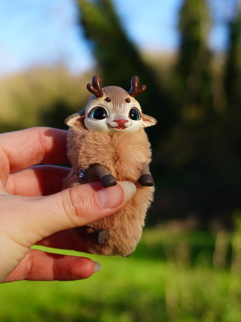 Meet this adorable Mercurian baby deer — a tiny forest spirit with a gentle, heart-melting charm. Perfectly sized to rest in your hand or sit on a cozy shelf, this miniature deer adds a touch of winter warmth to any nook — from Christmas décor to year-round collections of whimsical creatures.