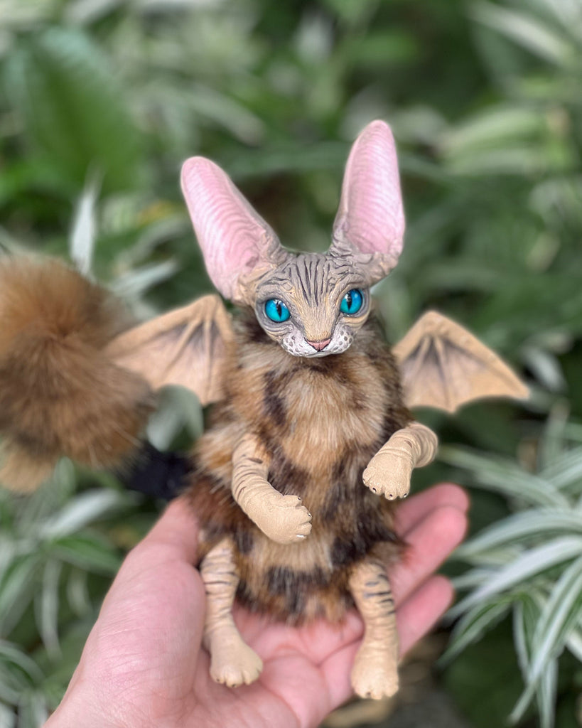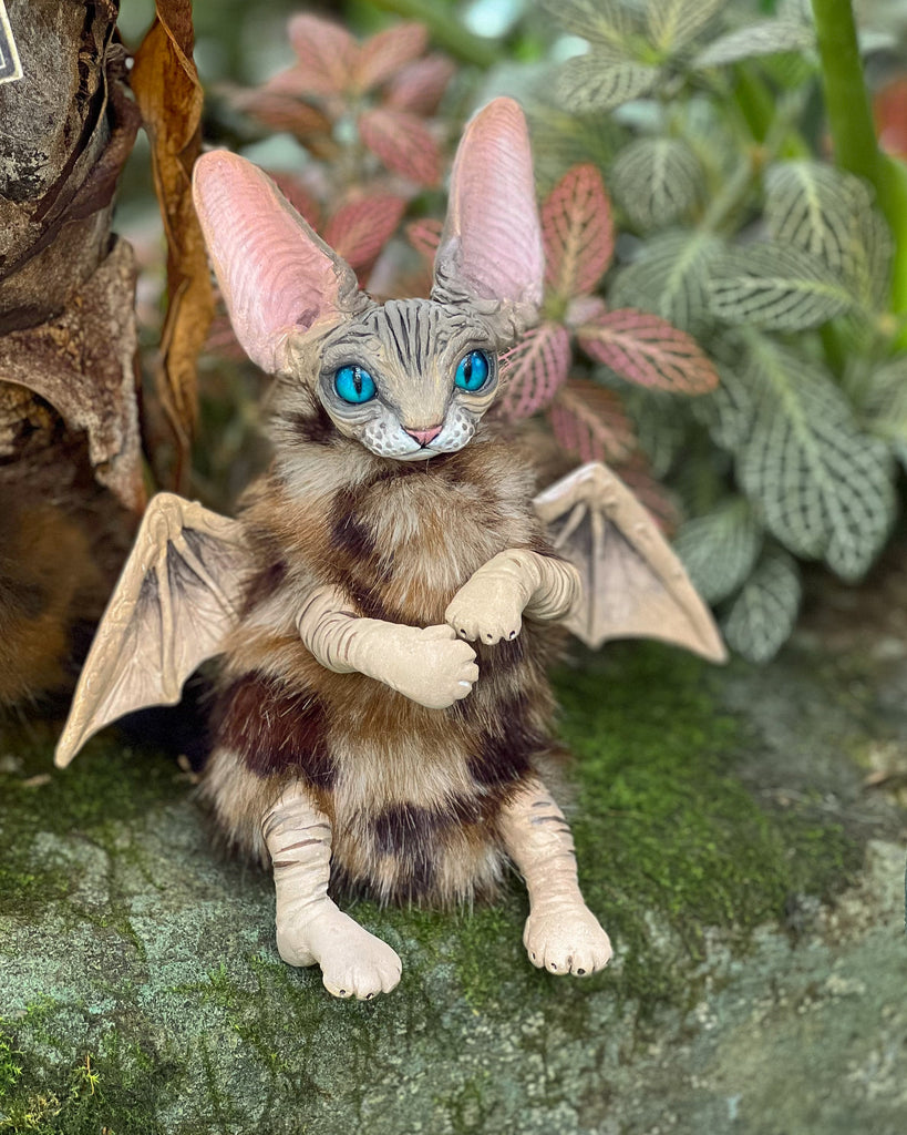 Baby batcats are the best of both worlds, they have the agility, night vision, and fluffiness of a cat while also having the wings, echolocation, and hearing of a bat. They are a mysterious kind of creature and love using their energy for all kinds of magic. The baby batcats are always guarded by a flock of adult batcats. The adult batcat can grow larger than the biggest fruit bat on Еarth. Their size and coloration depends on where they grow up and what kinds of energy they absorb. The baby batcats are mostly curious and interested in making new friends.