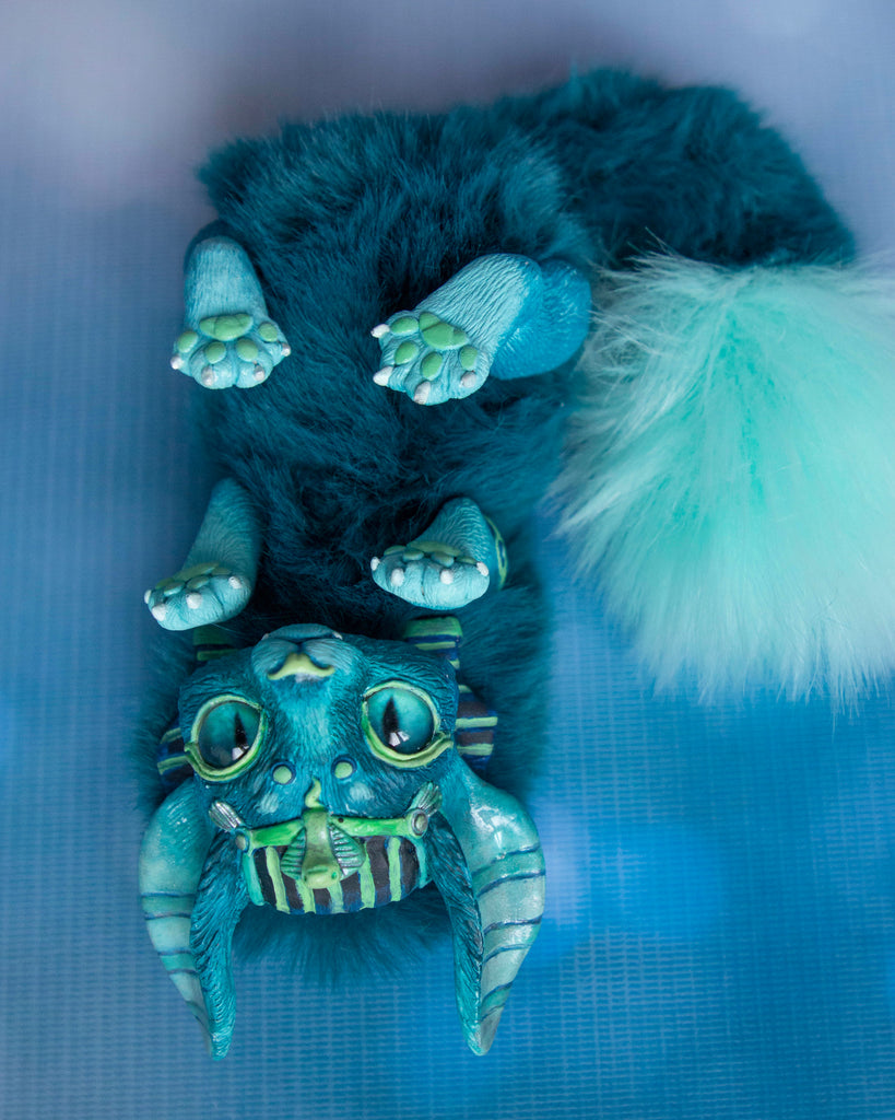 Materials: bjd skeleton, faux fur, acrylic paints, polyurethane, plastic skeleton, sintepon, pastels.