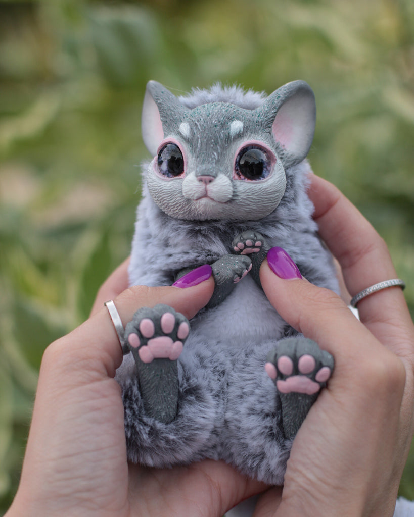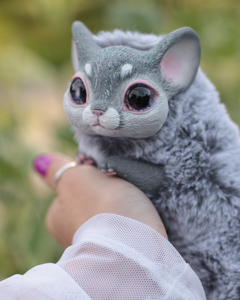 Materials: bjd skeleton, faux fur, acrylic paints, polyurethane, plastic skeleton, sintepon, pastels.