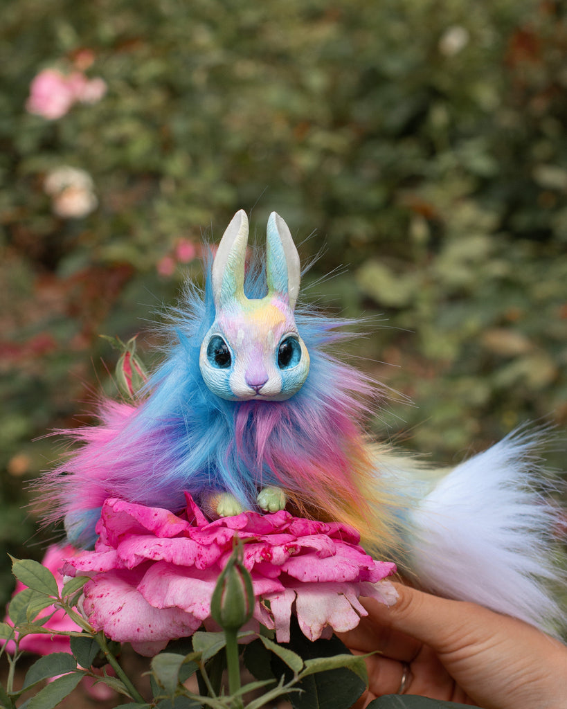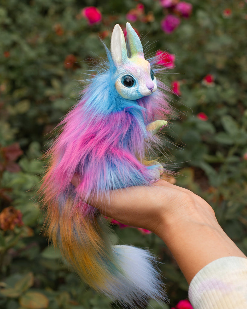 Materials: bjd skeleton, faux fur, polyurethane, wire, sintepon, pastels, acrylic paint, resin.