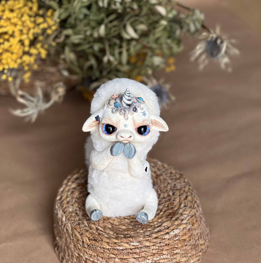 Materials: bjd skeleton, faux fur, polyurethane, wire, sintepon, pastels, acrylic paints, varnish.