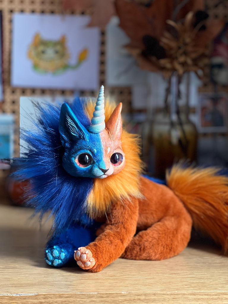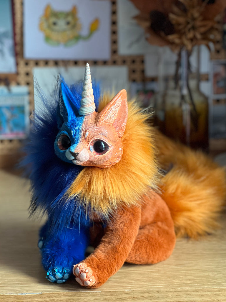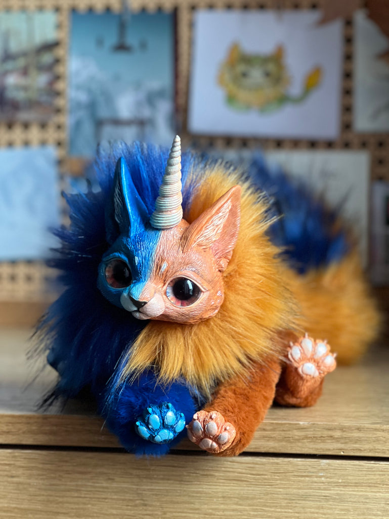 Meet this magical two coloured Unikitty — a whimsical fusion of feline charm and unicorn grace! With soft pastel fur, shimmering details, and a fully posable body, she’s a perfect companion for daydreamers and collectors alike. Whether perched on your shelf or curled up in your hand, she brings a little spark of fantasy wherever she goes. Handmade with care and imagination in our cozy Parisian workshop.