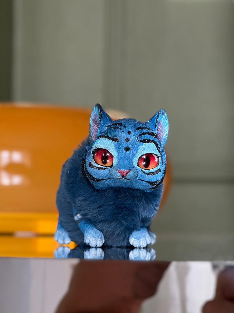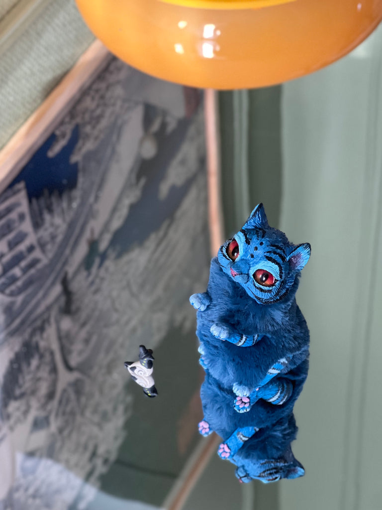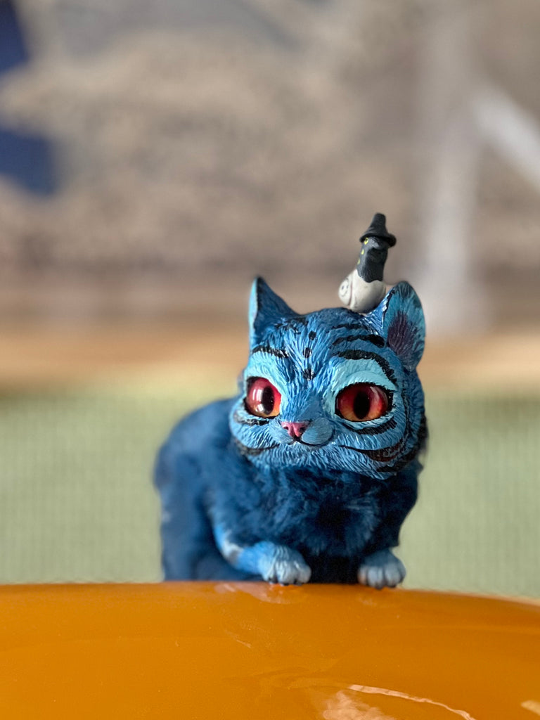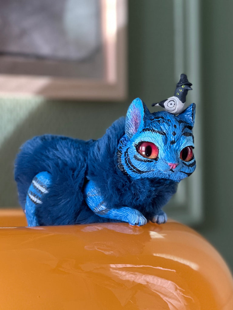 They turned into a chubby blue cat and a tiny magpie — so cute together!