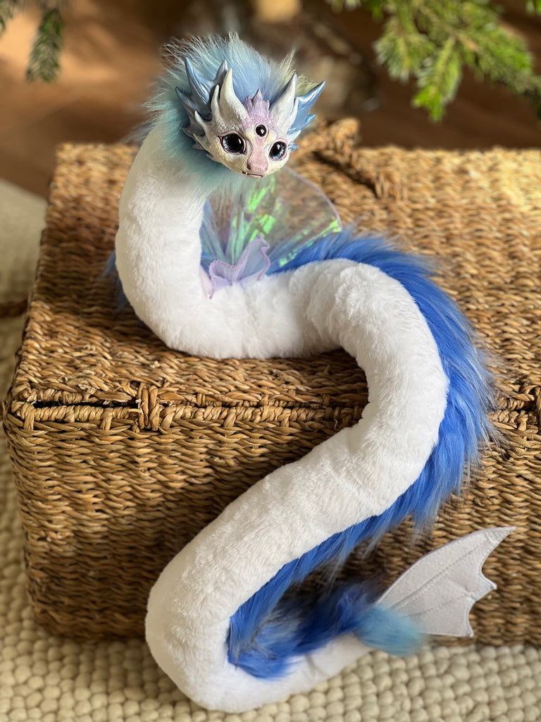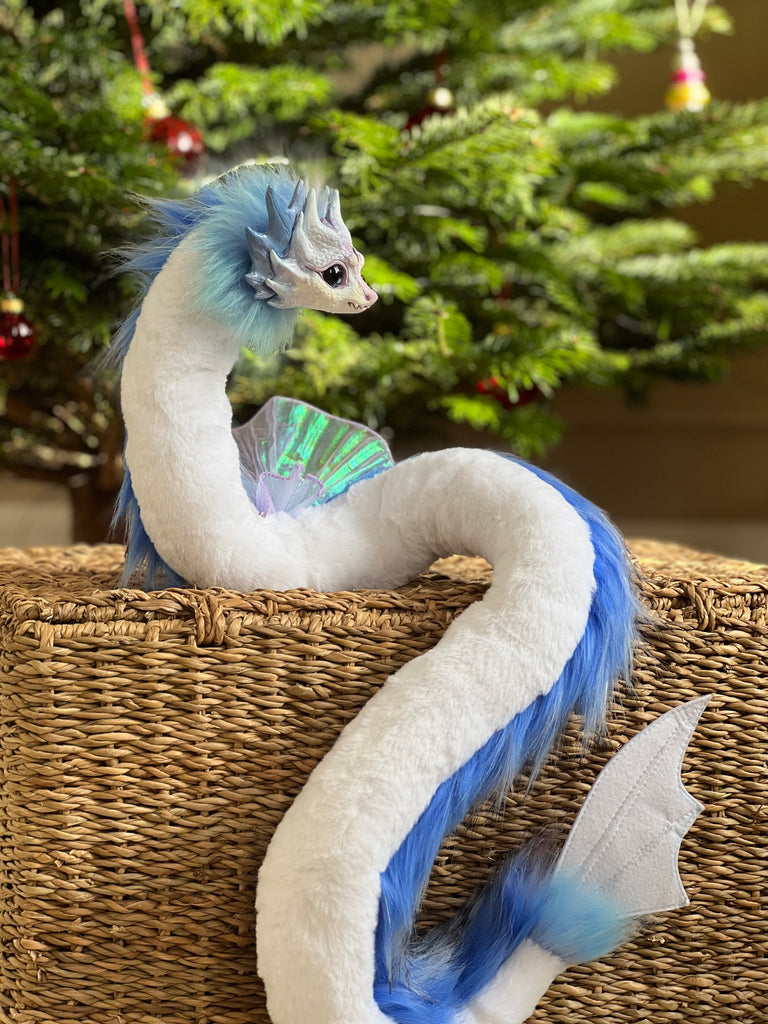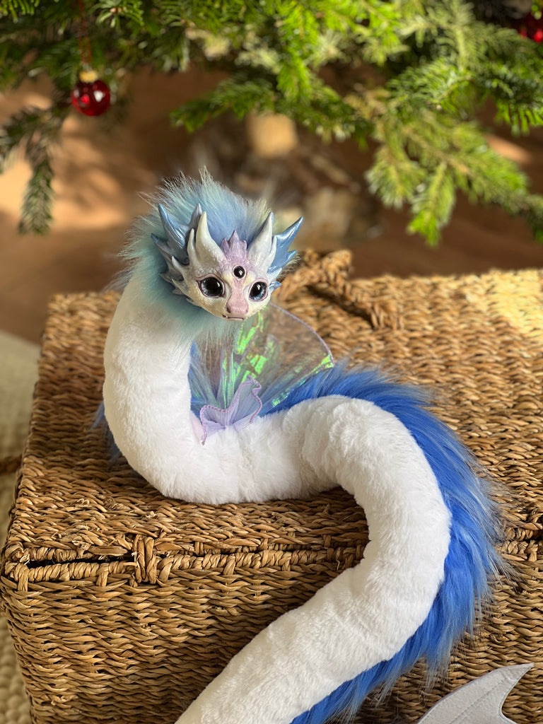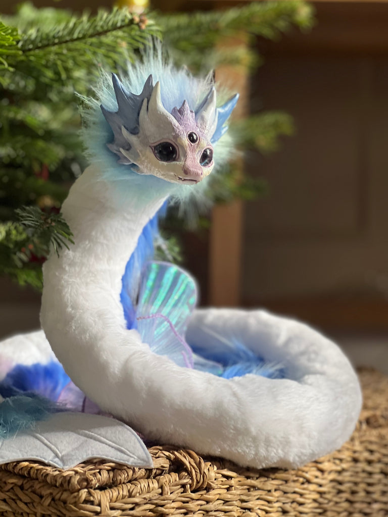 Inspired by Norse mythology, Frostlight Jormungandr is a modern take on the legendary World Serpent, Jörmungandr. This one-meter-long creature features white scales, iridescent fins, and a soft glow, reminiscent of moonlight on snow.