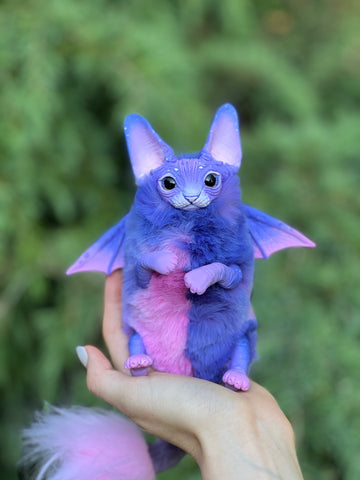 Baby batcats are the best of both worlds, they have the agility, night vision, and fluffiness of a cat while also having the wings, echolocation, and hearing of a bat. They are a mysterious kind of creature and love using their energy for all kinds of magic. The baby batcats are always guarded by a flock of adult batcats. The adult batcat can grow larger than the biggest fruit bat on Еarth. Their size and coloration depends on where they grow up and what kinds of energy they absorb. The baby batcats are mostly curious and interested in making new friends.