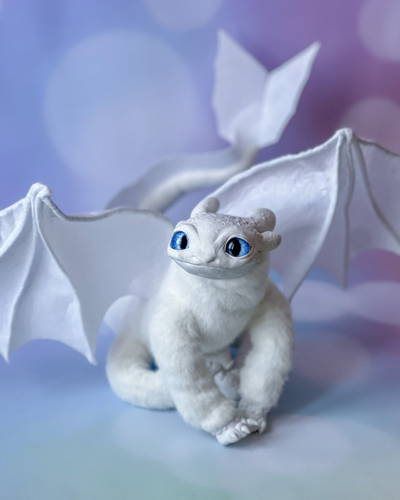 Ce dragon Nightlight Fury a été inspiré par le film "How to train your dragon". Voici notre vision de ce à quoi ressembleraient un dragon furieux nocturne et un enfant de dragon furieux léger. Commandez-le dès maintenant - c'est peut-être votre destin d'essayer d'apprivoiser cette merveilleuse et mystérieuse créature !