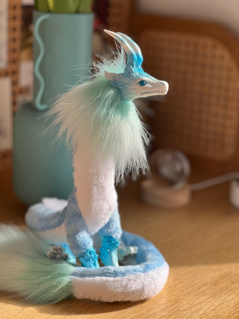 The Sky Blue Spirit is a celestial dragon with sky-blue scales, racing through the heavens like swift spring clouds. Carried by restless winds, it breathes life into the world below, whispering the promise of new beginnings. A guardian of the boundless sky, it inspires dreamers and wanderers, forever chasing the fleeting beauty of the season.