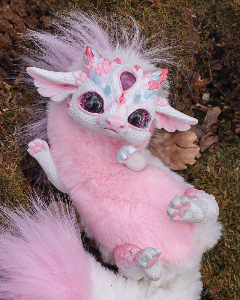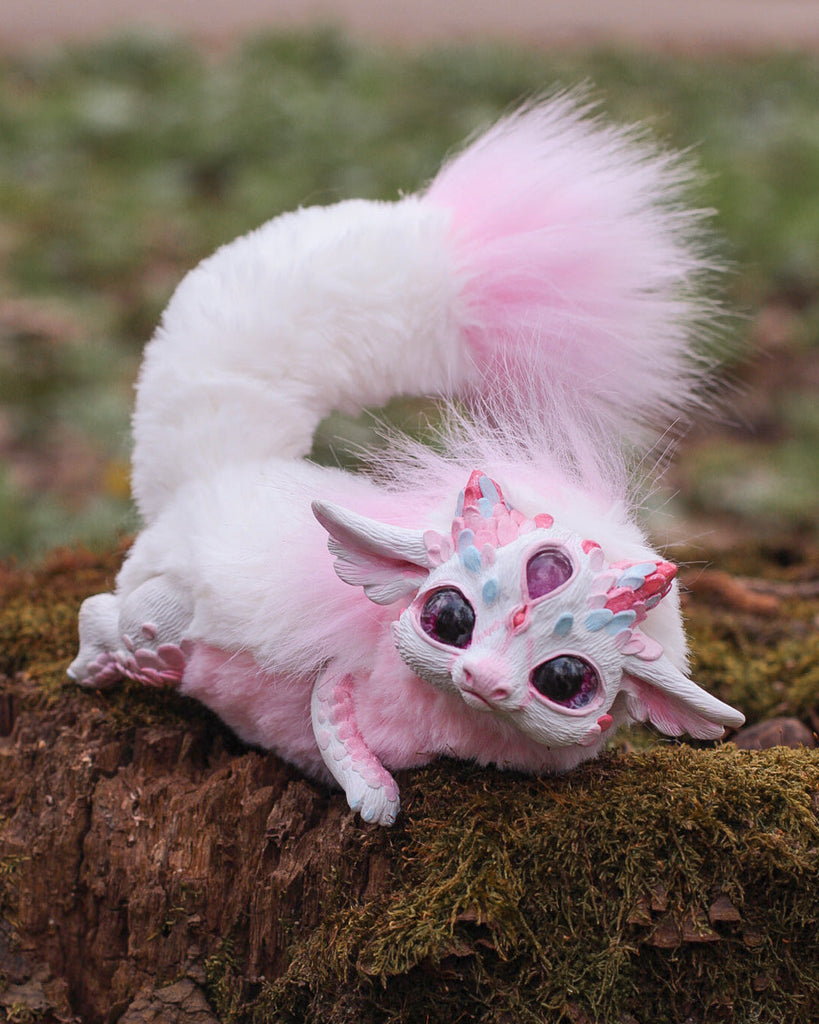 Materials: bjd skeleton, faux fur, polyurethane, wire, sintepon, pastels, acrylic paints, varnish.